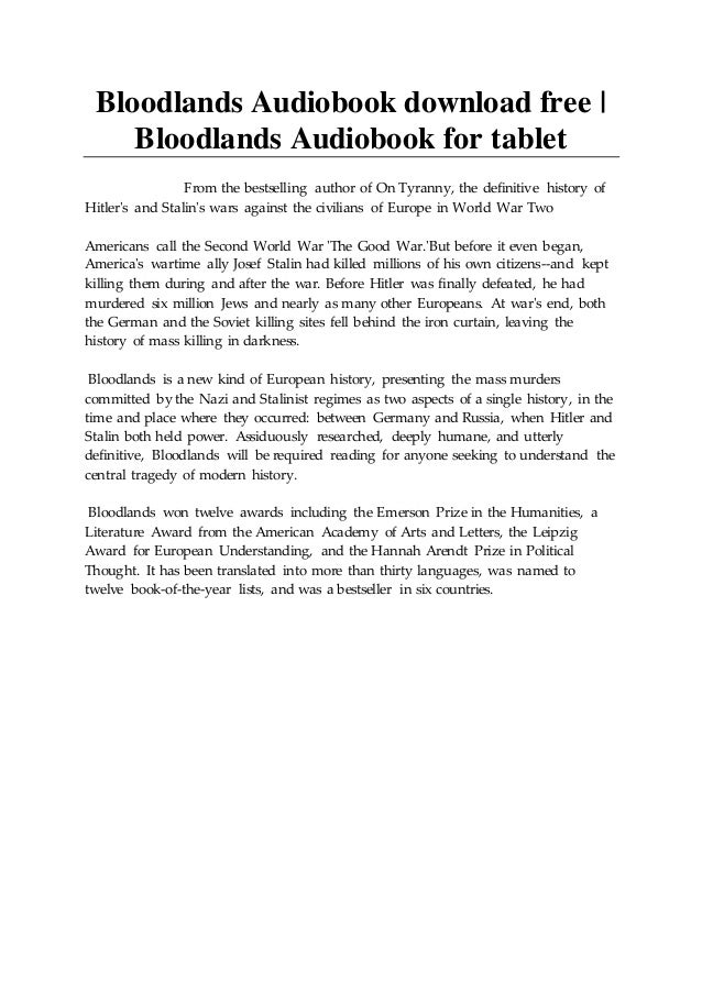 Snyder's bloodlands label is jarring, a title those beautiful lands and those who now live there do not snyder insists that the colossal atrocities in his bloodlands have to be set inside a single. The book examines the political, cultural and ideological context tied to a specific area of land. It will add mainly new textures to germanize liberated soviet armaments. It concerns a family of farmers getting in a feud with a coven of witches.this film contains examples of It is less appealing, but morally more urgent, to understand the actions of the perpetrators.